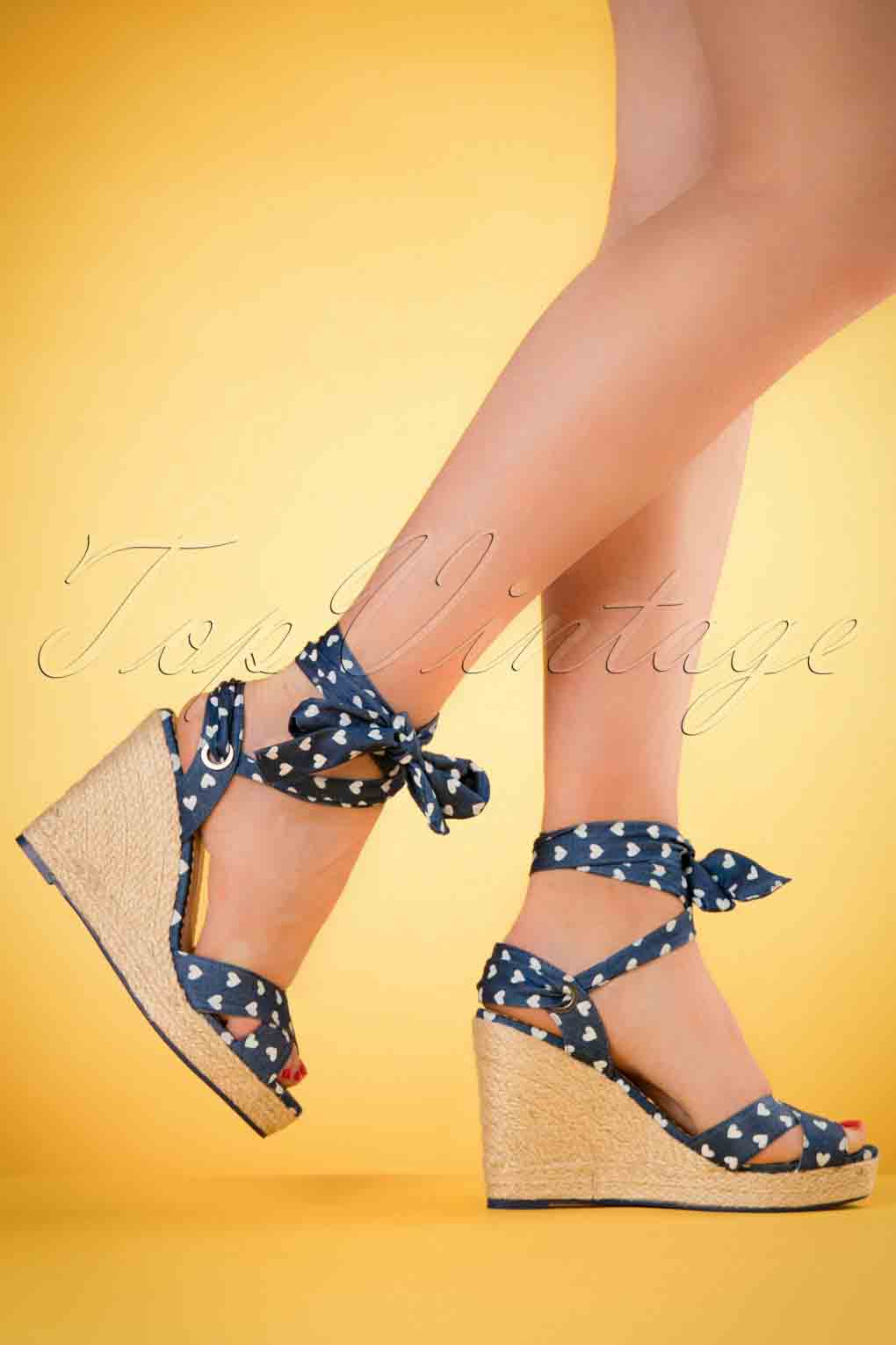 50s Poppie Heart Wedge Sandals in Blue