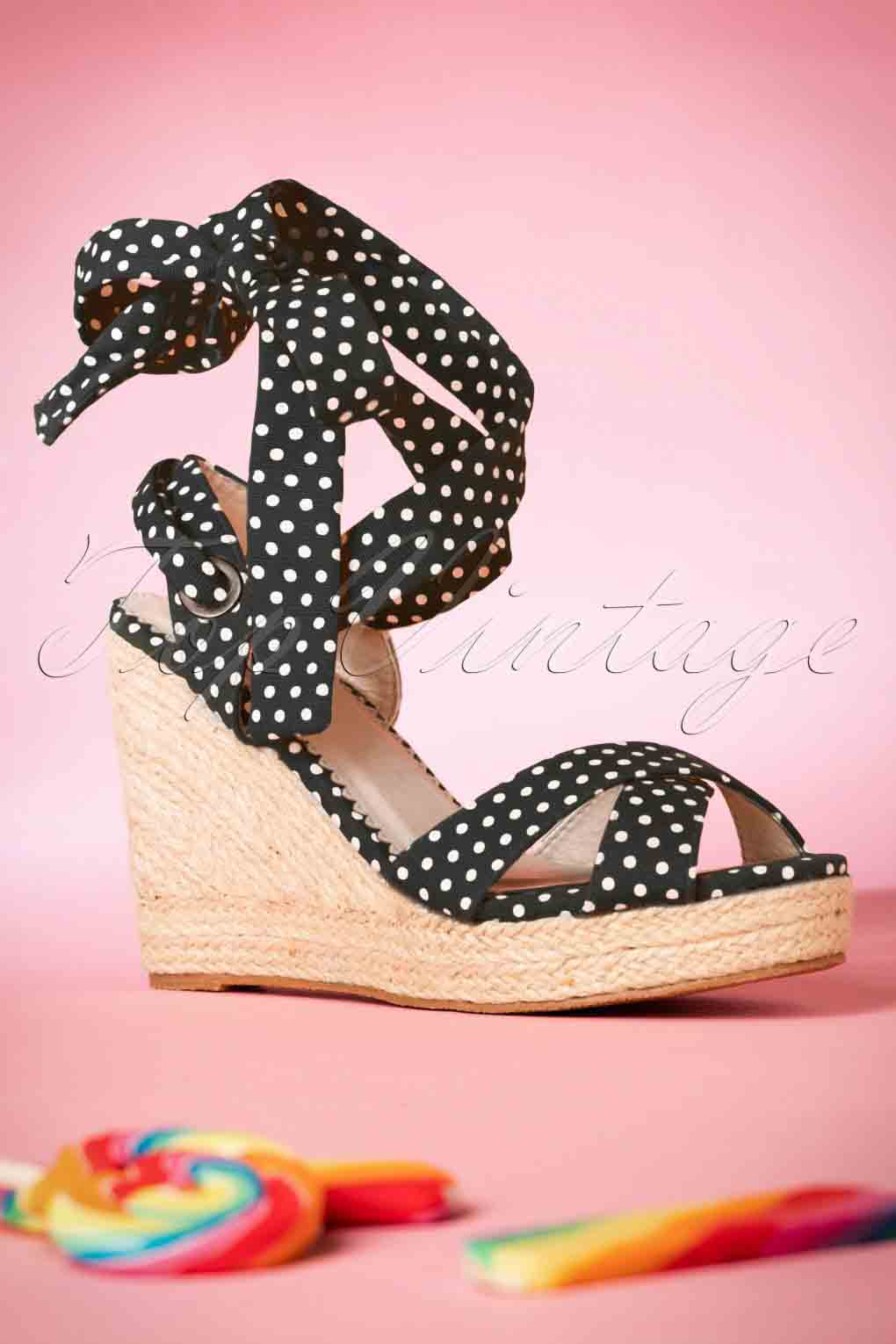 50s Poppie Polkadot Wedge Sandals in Black
