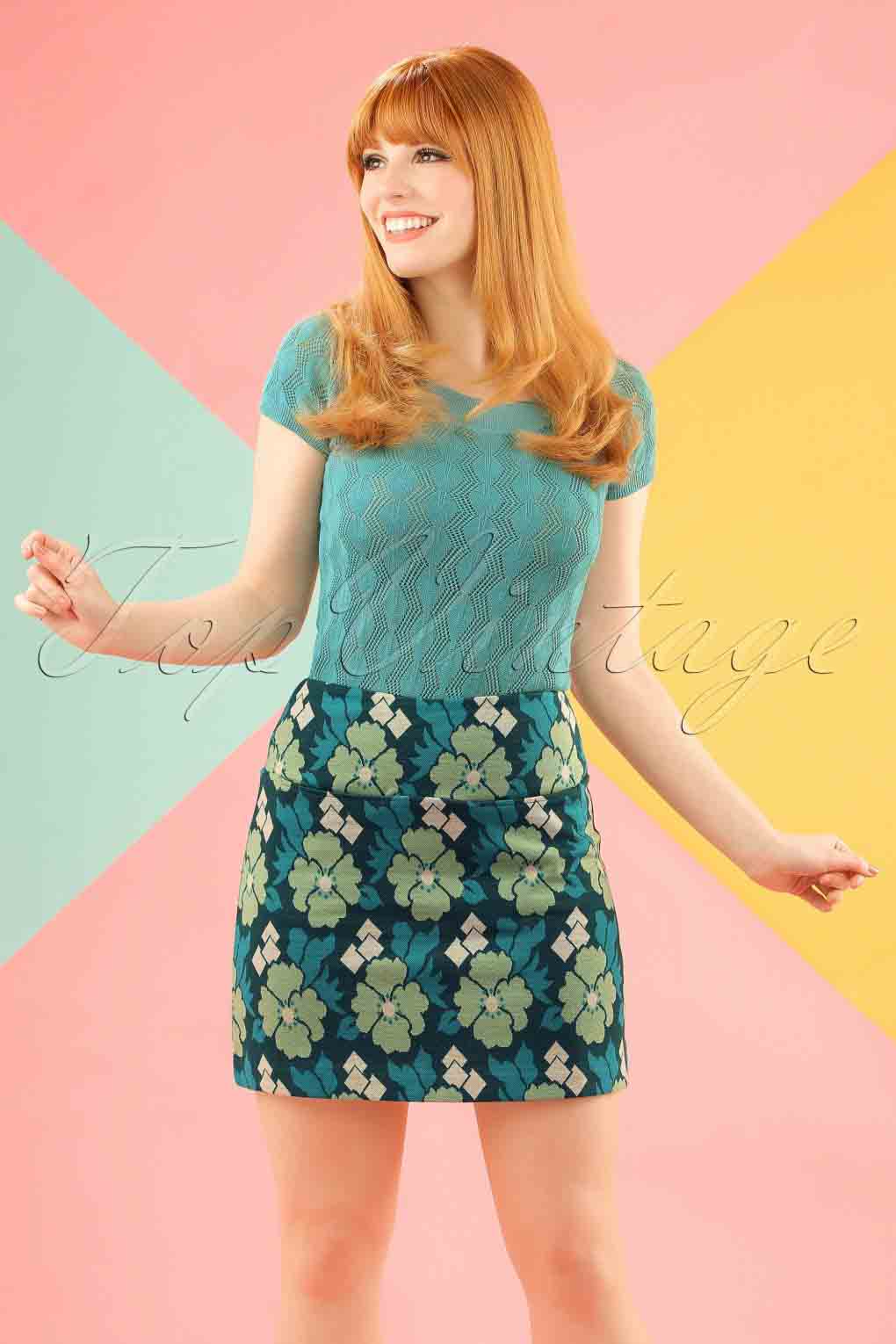 60s Olivia Extravaganza Skirt in Garden Green