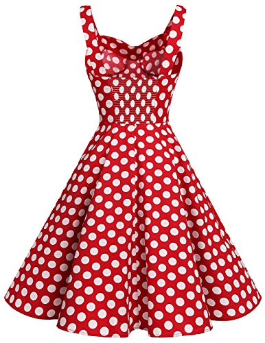 ANGVNS Damen Polka Dots Vintage Kleid Cocktailkleider Sommerkleid Partykleider Ärmellos Slim Fit Faltenrock Kurz Kleider A-Linie