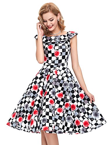 Unser Vintage Kleid ist aus sehr angenehmem Stoff und gut verarbeitet. Perfekt für viele Anlässe wie Casual, Party, Cocktail, Picknick, Abend, Hochzeit und Abschlussball usw. Sie können unbedingt eins finden, das Ihnen gefällt und zu Ihrem Stil passt! Details:: – Material: 98% Baumwolle + 2% Spandex – Ärmellos – Abnehmbarer Schwarzer Gürtel Hinweis:: 1. Bitte wählen Sie die richtige passende Größe aus mit unserer Größentabelle als Referenz. 2. Pflegehinweis: Handwäsche. 3. Sollten Sie irgendwelche Frage haben, Sie können uns Email senden. Viel Spaß beim Einkaufen!