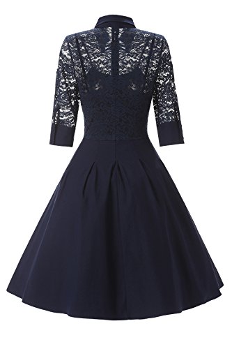 Babyonline- Damen Vintage 50er Rockabilly Swing Audrey Hepburn Kleid Knielang Navy Blau XL