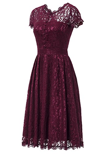 Miusol Damen Vintage 1950er Off Schulter Cocktailkleid Retro Spitzen Schwingen Pinup Rockabilly Kleid
