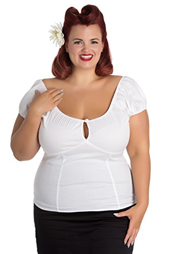 Das britische Modelabel Hell Bunny steht für Retro- & Rockabilly-Kleidung und einmalig süße, aber manchmal auch leicht blutige Stoff-Designs.Seit 2004 die Kultmarke aus London für alle, die einfach etwas anders sind als der Mainstream. Details: Tröpfchenausschnitt mit Knopf Details: elastisches Gummiband am Ausschnitt und Armabschluss Muster: unifarben Ausschnitt: Rundhals Ärmellänge: Kurzarm Verschluss: Reißverschluss Fit: leicht tailliert, Unterbrustnaht Größenflag: fällt normal aus Gesamtlänge: 50 cm bei Größe S Material Oberstoff: 98% Baumwolle, 2% Elasthan Material Futter: ungefüttert