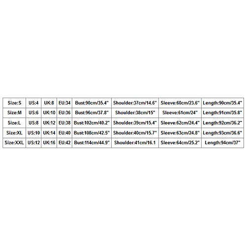 ❤Größentabelle (Einheit: cm / inch) Größe: S — Büste: 90cm / 35.4 „— Schulter: 37cm / 14.6“ — Ärmel: 60cm / 23.6 „— Länge: 90cm / 35.4“ Größe: M — Büste: 96cm / 37.8 „— Schulter: 38cm / 15“ — Ärmel: 61cm / 24 „— Länge: 91cm / 35.8“ Größe: L — Büste: 102cm / 40.2 „— Schulter: 39cm / 15.4“ — Ärmel: 62cm / 24.4 „— Länge: 92cm / 36.2“ Größe: XL — Büste: 108cm / 42.5 „— Schulter: 40cm / 15.7“ — Hülse: 63cm / 24.8 „— Länge: 93cm / 36.6“ Größe: XXL — Büste: 114cm / 44.9 „— Schulter: 41cm / 16.1 — Ärmel: 64cm / 25.2″ — Länge: 94cm / 37 “ ❤Eigenschaften: ❤1. Es ist aus hochwertigen Materialien, langlebig genug für Ihr tägliches Tragen. 2.Stylish und Mode machen Sie attraktiver. 3.Great für Party, Daily, Beach, ich bin mir sicher, Sie werden es mögen! ❤Produktinformation: Jahreszeit: Sommer, Frühling, Herbst Geschlecht: Damen Gemessen: es können 2-3 cm Abweichungen auftreten. Gelegenheit: Lässig Stil: Lässig Fit: Fällt auf Größe aus Dicke: Standard Wie waschen: Handwäsche kalt, hängend oder trocken Was Sie bekommen: 1 * IZHH Damen Kleider.