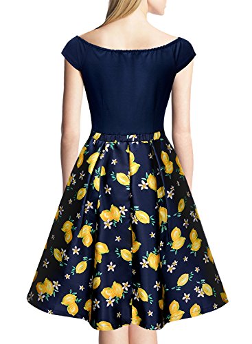 Miusol Damen V-Ausschnitt Schleife Cocktailkleid Faltenrock 50er 60er Jahr Party Stretch-Kleid