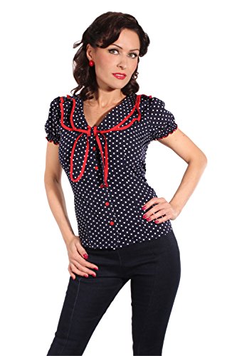 retro Style Polka Dots Rockabilly Puffärmel Schleife retro Shirt Bluse