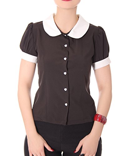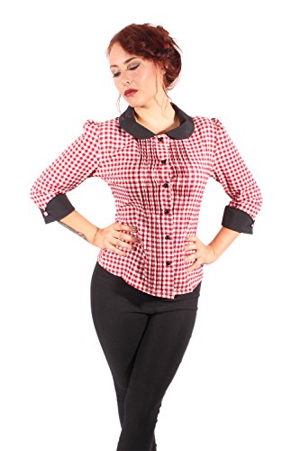 Größe auswählen: S (36-38), M (38-40), L (40-42), XL (42-44) oder XXL (44-46) Maße f. S: ca. 58 cm lang, Brustumfang bis max. ca. 96 cm, Taillenumfang bis max. ca. 76 cm Maße f. M: ca. 59 cm lang, Brustumfang bis max. ca. 101 cm, Taillenumfang bis max. ca. 82 cm Maße f. L: ca. 61 cm lang, Brustumfang bis max. ca. 107 cm, Taillenumfang bis max. ca. 88 cm Maße f. XL: ca. 63 cm lang, Brustumfang bis max. ca. 113 cm, Taillenumfang bis max. ca. 94 cm Maße f. XXL: ca. 65 cm lang, Brustumfang bis max. ca. 120 cm, Taillenumfang bis max. ca.100 cm Farbe: schwarz Marke: SugarShock Material: 80% Polyester, 20% Elasthan Mit dieser entzückenden fifties Bluse im Kirschen Design bist du auch an kühlen Tagen perfekt gekleidet. Das stärkere Material ist leicht stretchig und mit dem figurbetonten Schnitt optimal verarbeitet. Auf den ersten Blick von vorne eher bider, lässt der Rüschchen-Stehkragen im Nacken überraschend einen sexy Schlüsselloch Ausschnitt frei. Passend sind lange Puffärmel gewählt.